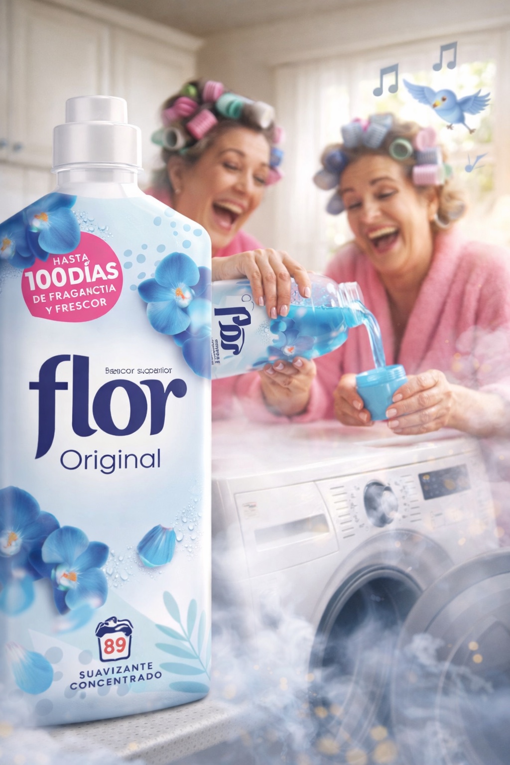 Lo que más se destaca del Flor original es que aporta suavidad, fragancia duradera y ayuda a facilitar el planchado y a reducir el efecto antiestático en la ropa. Algunas fichas comerciales también mencionan microcápsulas de fragancia y hasta 100 días de frescor según uso y almacenamiento.