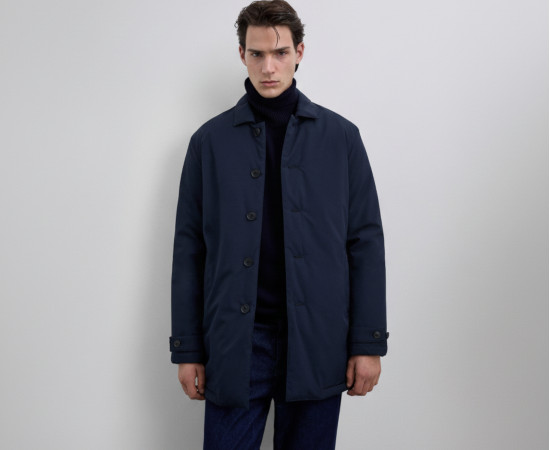 Confeccionado en tejido técnico y un forro interior que aporta calidez, este abrigo presenta una silueta recta y un regular fit que favorece la movilidad sin perder la línea elegante. Su cierre frontal de botones y el cuello clásico le confieren un aire atemporal, mientras que los detalles prácticos lo hacen ideal tanto para el día a día en la ciudad como para los desplazamientos en climas fríos.
