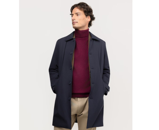 En cuanto a su diseño funcional, incorpora un cuello con capucha desmontable mediante cremallera, un detalle que multiplica las posibilidades de uso. Con la capucha puesta, el abrigo ofrece mayor protección frente al viento y la lluvia; sin ella, adquiere un aspecto más limpio y formal, ideal para entornos urbanos o profesionales. Esta versatilidad lo convierte en una prenda adaptable a diferentes momentos del día y a distintos estilos personales.