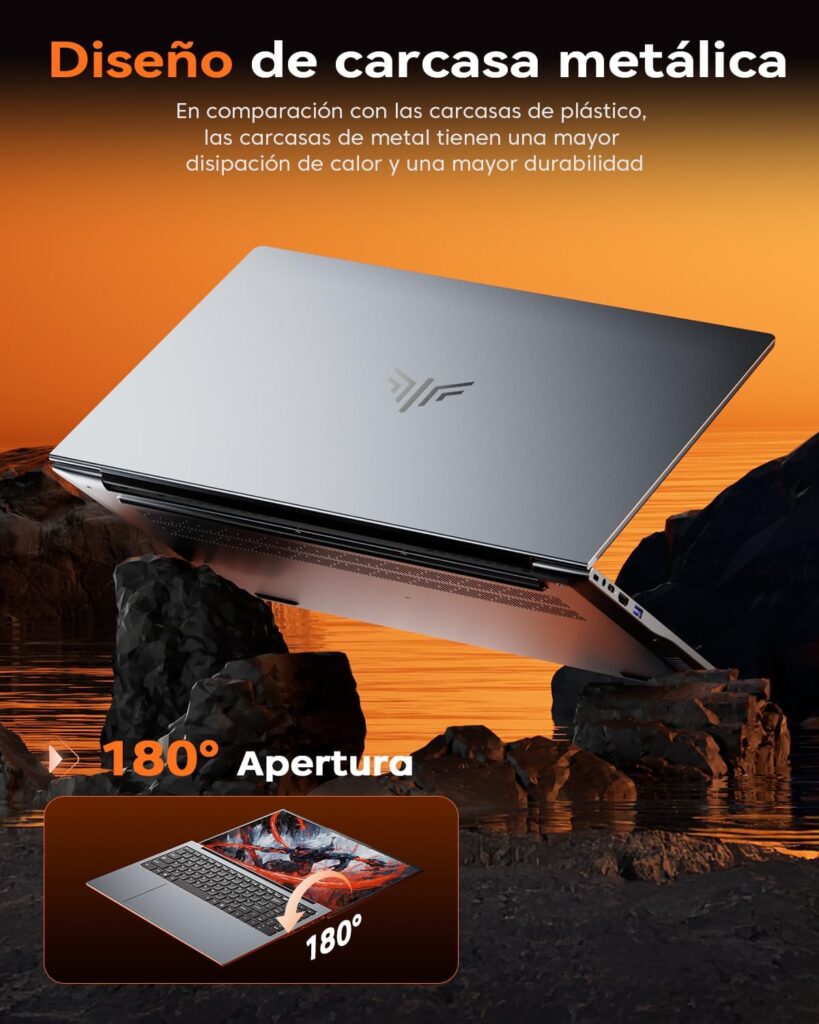 El Acemagic TX16 Pro monta una pantalla Full HD de 16 pulgadas con resolución 1920 × 1200 y relación de aspecto 16:10, ofreciendo un área útil mayor que los paneles tradicionales y una sensación de espacio ampliado en escritorio y edición. La reproducción de color es amplia y precisa, los detalles finos se muestran con claridad y la frecuencia de actualización de 60 Hz asegura desplazamientos y reproducción fluida en tareas multimedia y juegos no extremos. Esta combinación convierte paisajes, escenas de trabajo y contenidos audiovisuales en una experiencia más inmersiva y cómoda para sesiones largas.El chasis metálico del TX16 Pro aporta rigidez estructural, resistencia a arañazos y una mejora en la disipación del calor que prolonga el rendimiento bajo cargas sostenidas. El acabado metálico además mantiene una estética sobria y profesional con apariencia de alta calidad. El teclado retroiluminado con iluminación azul facilita la escritura en entornos con poca luz y añade una nota visual moderna, garantizando precisión y confort en tareas de oficina, programación o uso nocturno. Equipado con el procesador AMD Ryzen 7 5825U de ocho núcleos y dieciséis hilos, el portátil ofrece una combinación sólida de potencia para multitarea, edición de vídeo ligera y juegos casuales. La frecuencia turbo de hasta 4,5 GHz junto con los gráficos integrados AMD Radeon a 2,0 GHz permiten manejar aplicaciones exigentes sin sacrificar fluidez. El diseño térmico del equipo favorece un funcionamiento estable durante sesiones prolongadas, optimizando tanto la experiencia de uso como la longevidad de los componentes.