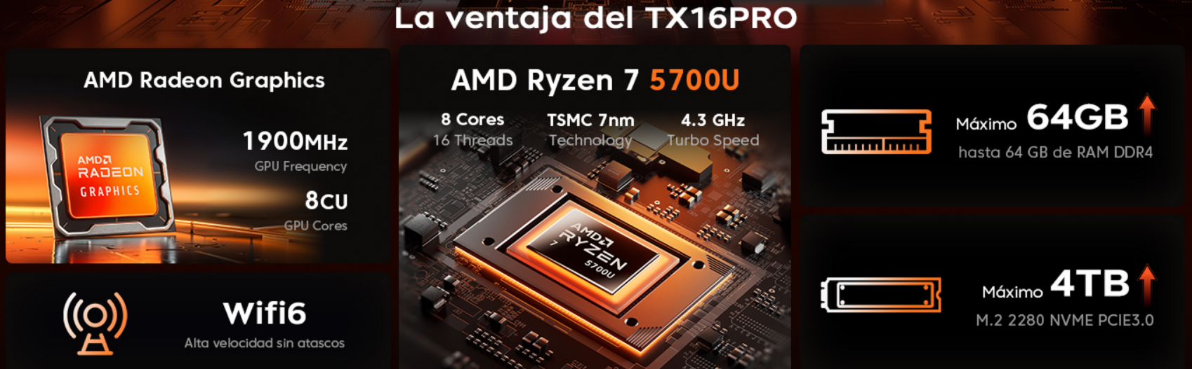 El Acemagic TX16 Pro monta una pantalla Full HD de 16 pulgadas con resolución 1920 × 1200 y relación de aspecto 16:10, ofreciendo un área útil mayor que los paneles tradicionales y una sensación de espacio ampliado en escritorio y edición. La reproducción de color es amplia y precisa, los detalles finos se muestran con claridad y la frecuencia de actualización de 60 Hz asegura desplazamientos y reproducción fluida en tareas multimedia y juegos no extremos. Esta combinación convierte paisajes, escenas de trabajo y contenidos audiovisuales en una experiencia más inmersiva y cómoda para sesiones largas.