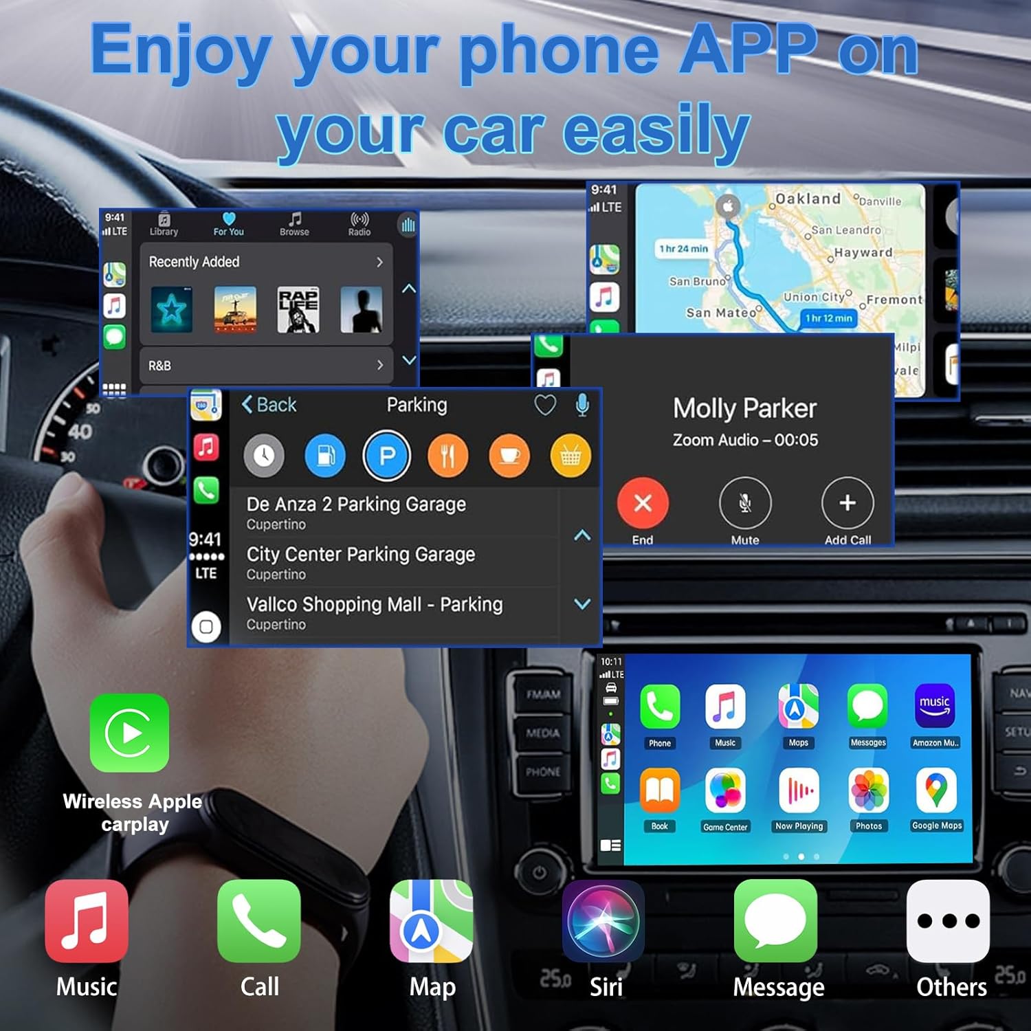 En menos de un minuto, tu sistema CarPlay estará listo para funcionar de manera inalámbrica, ofreciendo una experiencia fluida y sin interrupciones. Lo mejor es que todas las funciones originales del automóvil se mantienen intactas: desde la navegación hasta la gestión de llamadas y el acceso a tu música favorita.