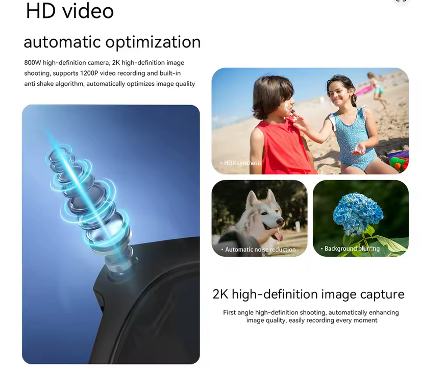 Uno de los principales atractivos de las Blackview BV100 es su cámara 2K de 8 megapíxeles, que permite capturar fotos y vídeos en alta resolución desde una perspectiva en primera persona. Esta funcionalidad resulta especialmente útil para viajeros, creadores de contenido, profesionales y cualquier usuario que desee documentar su día a día de forma natural y sin necesidad de utilizar las manos.