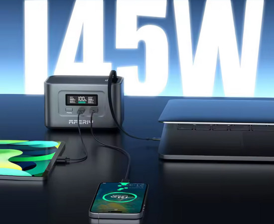 Está equipada con dos puertos USB‑C y un puerto USB‑A, permitiendo cargar varios dispositivos al mismo tiempo. Su salida máxima combinada alcanza los 145 W, lo que la convierte en una herramienta ideal para alimentar desde smartphones hasta portátiles de alto rendimiento.