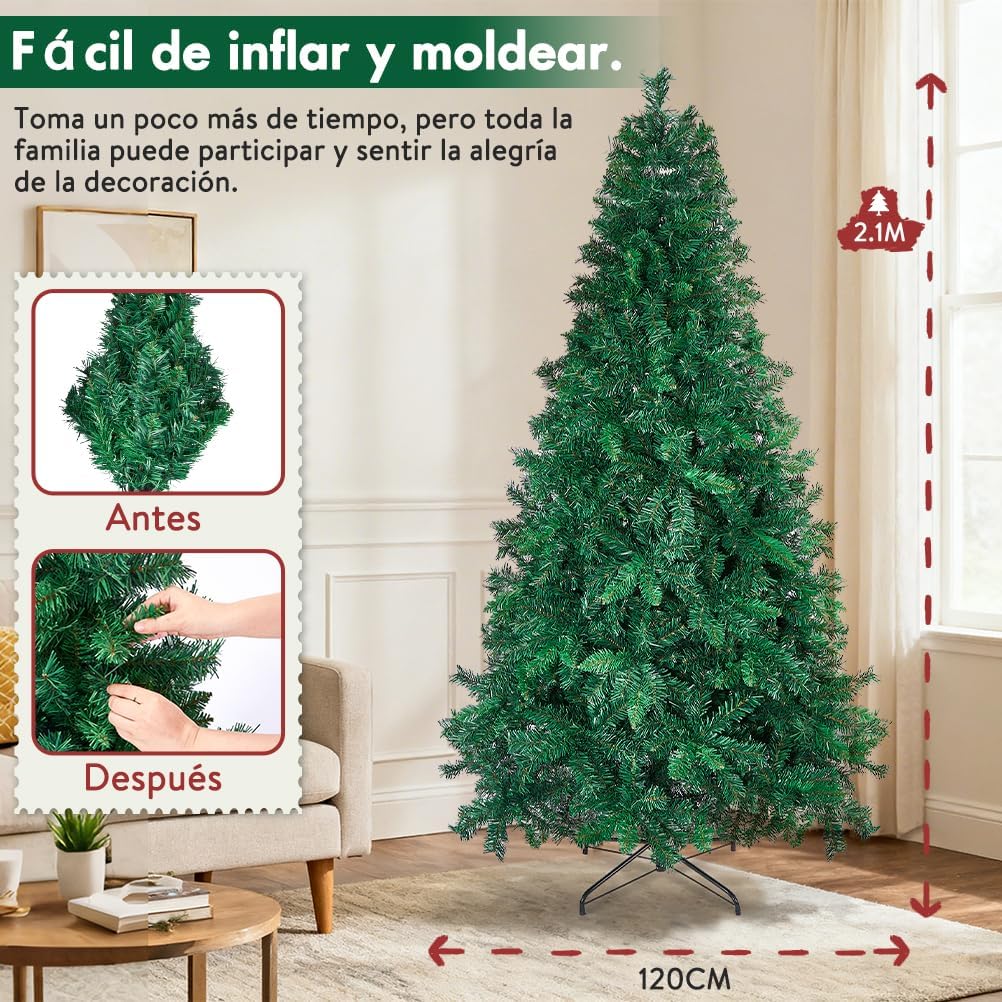 Árbol de Navidad Ousfot 210 cm: realismo, seguridad y montaje fácil para tu hogar por 45,53€ antes 89,99€.
