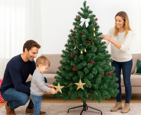 Su tronco se divide en tres secciones que se ensamblan fácilmente, permitiendo que incluso quienes montan un árbol por primera vez puedan hacerlo sin complicaciones. Una vez colocadas las secciones, basta con desplegar las ramas y darles forma para conseguir un aspecto más completo y natural. En pocos minutos, el árbol estará listo para recibir la decoración y convertirse en el centro de atención de la sala.