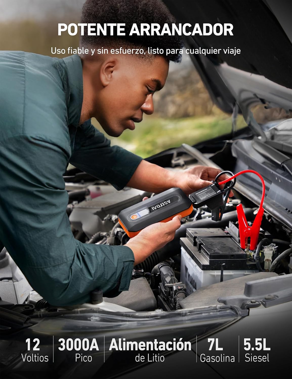 Lo primero que sorprende del AstroAI B8 es su capacidad de respuesta frente a motores de gran cilindrada. A pesar de su apariencia minimalista, este dispositivo es capaz de despertar motores de gasolina de hasta 7L y motores diésel de hasta 5.5L. Esto significa que no solo es apto para turismos convencionales, sino que es el compañero ideal para SUVs, furgonetas y motocicletas de alta cilindrada.
