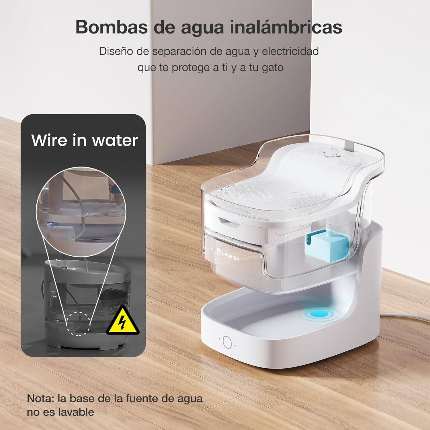 La seguridad es otro punto clave. La bomba de agua sensorial separa el recipiente de agua de la fuente de alimentación, eliminando riesgos de electrocución. Además, su flujo es extremadamente silencioso, creando un ambiente tranquilo tanto para la mascota como para el hogar. Esta característica resulta ideal para quienes buscan un dispositivo eficiente sin ruidos molestos.