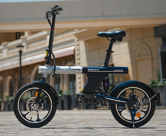 El diseño incluye un asiento ajustable en altura para adaptar la postura y mejorar la ergonomía en trayectos largos. Las ruedas de 16 pulgadas se han elegido para ofrecer un compromiso entre agilidad y estabilidad, y los componentes están pensados para resistir el uso frecuente. En materia de seguridad, la bicicleta equipa frenos de doble disco que garantizan una frenada eficiente y constante, y un sistema de iluminación integrado que mejora la visibilidad en condiciones de poca luz. Estos elementos, junto con la estructura sólida, contribuyen a una experiencia de uso segura y confiable.