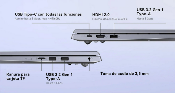 En cuanto a la autonomía, su batería de 8000 mAh se apoya en la tecnología de carga rápida 45W PD3.0 a través de un puerto USB-C multifunción. Este puerto es la navaja suiza de la conectividad: carga el equipo, transfiere datos a alta velocidad y permite conectar periféricos modernos, superando las limitaciones de los antiguos conectores DC. Y con el soporte de Wi-Fi 6, las interrupciones en streaming o descargas pesadas son cosa del pasado.