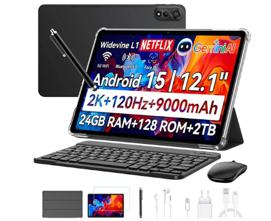 • GPS Integrado: Perfecta para usarla como navegador de gran formato en tus viajes.Y para que no tengas que buscar un enchufe a mitad de jornada, cuenta con una generosa batería de 9000mAh. Esta capacidad te permite horas de uso intensivo, apoyada por una carga de 15W para recuperar energía de forma eficiente. Viene acompañada de teclado Bluetooth, ratón, lápiz táctil, auriculares y funda protectora.