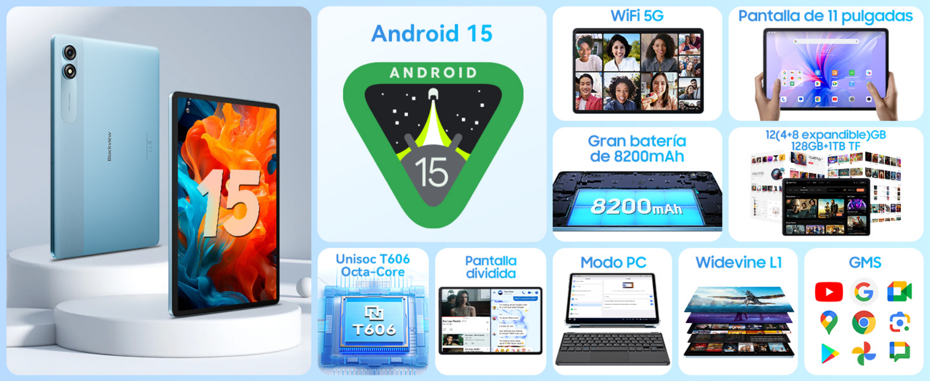 Blackview Tab 90, 11″ 120Hz, 4+8V/128GB ampliable a 2TB, Android 15, 8200mAh por 109,99€.