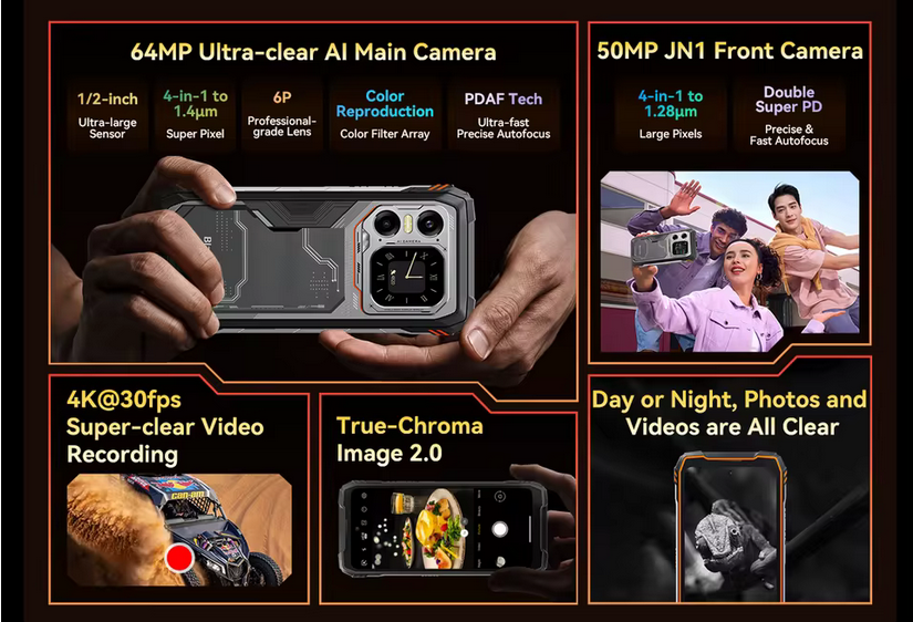 El sistema de cámaras del Blackview XPLORE 1 está diseñado para documentar cualquier entorno, sin importar la luz: