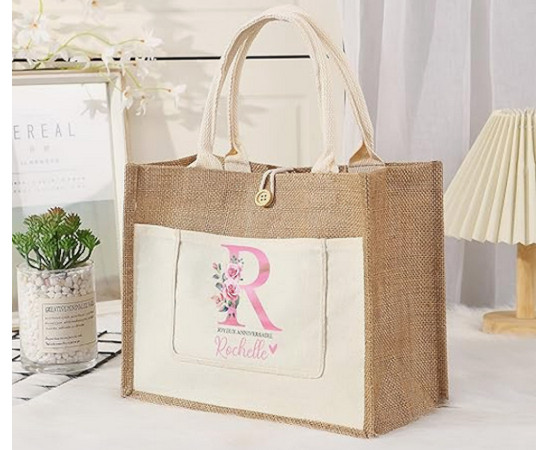 Esta bolsa de lona reciclable se puede personalizar con tu nombre, transformándola en una pieza única que refleja tu estilo.