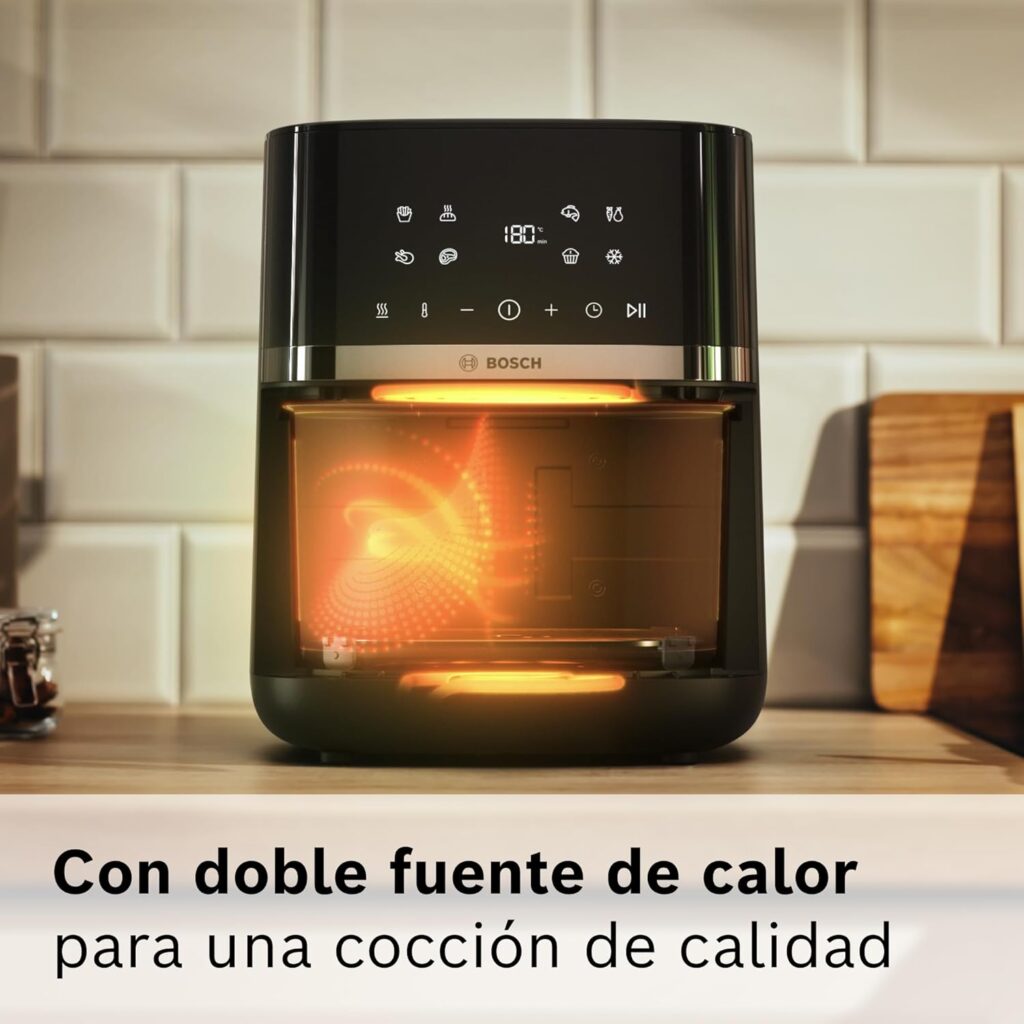 Si buscas una forma de preparar platos gourmet en tiempo récord, sin renunciar al sabor y reduciendo drásticamente el consumo de grasa, este dispositivo de Bosch ha sido diseñado pensando en ti. Con una generosa capacidad de 6,1 litros, la Serie 4 XL permite cocinar hasta 4 raciones generosas en una sola tanda, lo que la convierte en la opción ideal para familias o para quienes practican el meal prep semanal.Uno de los puntos críticos al elegir una freidora de aire es la velocidad. La Bosch Serie 4 XL elimina la espera: gracias a su avanzada tecnología de circulación de aire, no requiere precalentamiento. Esto se traduce en una cocción hasta un 60% más rápida en comparación con los hornos convencionales. Pero la rapidez no es el único beneficio. En el contexto actual de ahorro doméstico, esta freidora es una inversión inteligente: