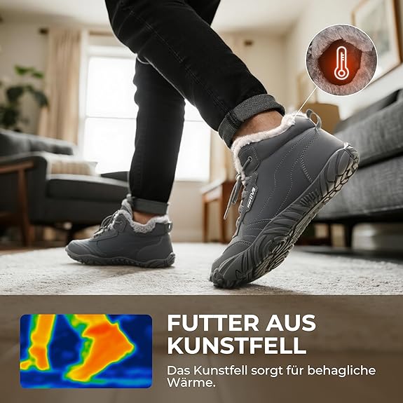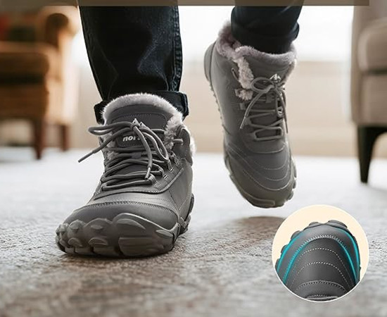 Otro aspecto clave es su caja de dedos amplia, una característica que marca la diferencia frente a otros modelos más rígidos o estrechos. Esta zona espaciosa permite que los dedos se muevan libremente, se estiren y se relajen, algo especialmente útil si se usan sin calcetines o si se busca evitar la sensación de presión típica de muchas botas de invierno. Esta libertad de movimiento contribuye a mejorar la circulación y a mantener el calor natural del cuerpo, lo que se traduce en mayor comodidad durante todo el día.