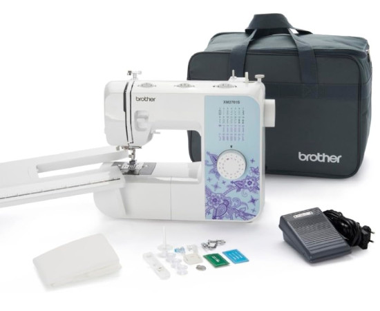 A diferencia de otros modelos básicos, la Brother XM2701S incluye un Super Pack diseñado para que no necesites comprar extras de inmediato. Destaca la inclusión de una mesa extensible, fundamental para manejar piezas de tela grandes como cortinas o mantas, y una bolsa de transporte para llevar tu taller a cualquier parte. El paquete se completa con un juego de prensatelas especializados (zigzag, ojales, cremalleras, botones y puntada invisible), un set de agujas (incluyendo la aguja doble), canillas, herramientas de mantenimiento y un pedal reóstato de alta sensibilidad.