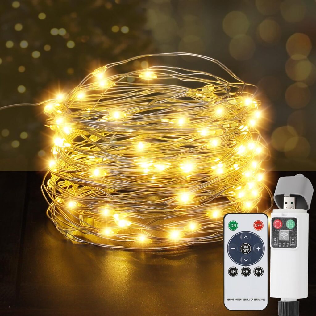 Cadena de luces LED 10M, 100 LEDs, 8 modos y batería recargable de 20h por 6,99€.