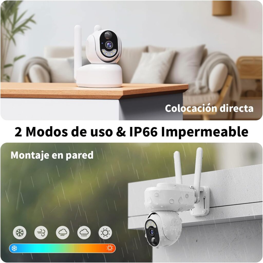 Finalmente, la cámara cuenta con certificación IP66, lo que garantiza resistencia frente a la lluvia, el polvo y otras condiciones climáticas adversas. Esto la hace adecuada tanto para interiores como para exteriores, asegurando un rendimiento óptimo en cualquier entorno.