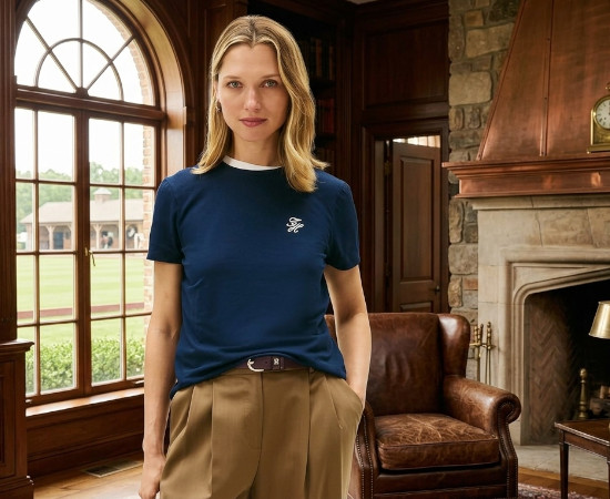 El diseño se centra en el minimalismo inteligente. El cuello redondo clásico proporciona una versatilidad absoluta, permitiendo que la camiseta funcione igual de bien bajo una americana estructurada para un entorno profesional que combinada con unos pantalones de talle alto para un look de fin de semana. Sin embargo, el verdadero protagonista es el logotipo Script bordado en el pecho. Esta caligrafía elegante aporta un aire artesanal y femenino, alejándose de los logos industriales más robustos para ofrecer una estética más refinada y exclusiva.