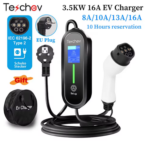 Cargador EV Portátil Teschev 3.5kW (16A), carga Tipo 2 y Tipo 1 con protección IP66 por 48,78€.