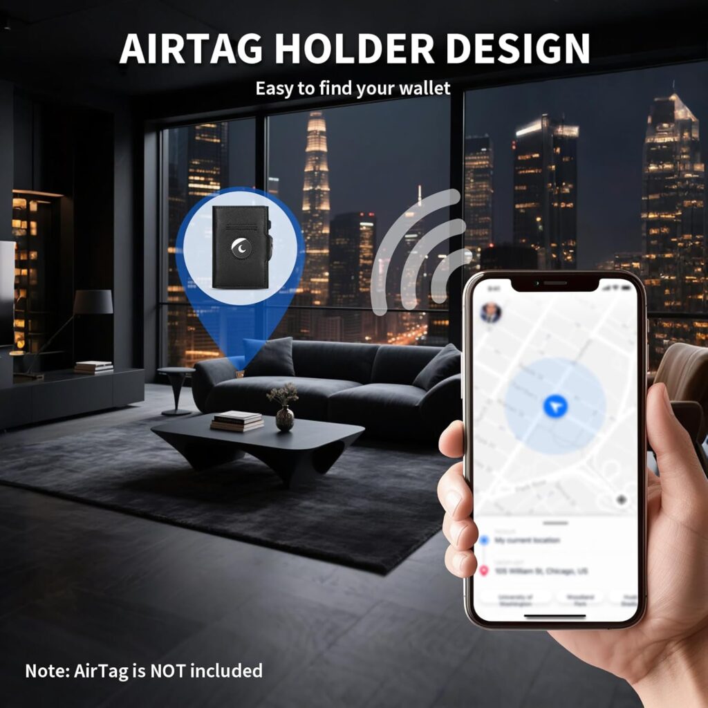 Cartera con tarjetero pop-up y protección RFID compatible con Airtag en cuero PU compacto por 17,99€ antes 29,99€.