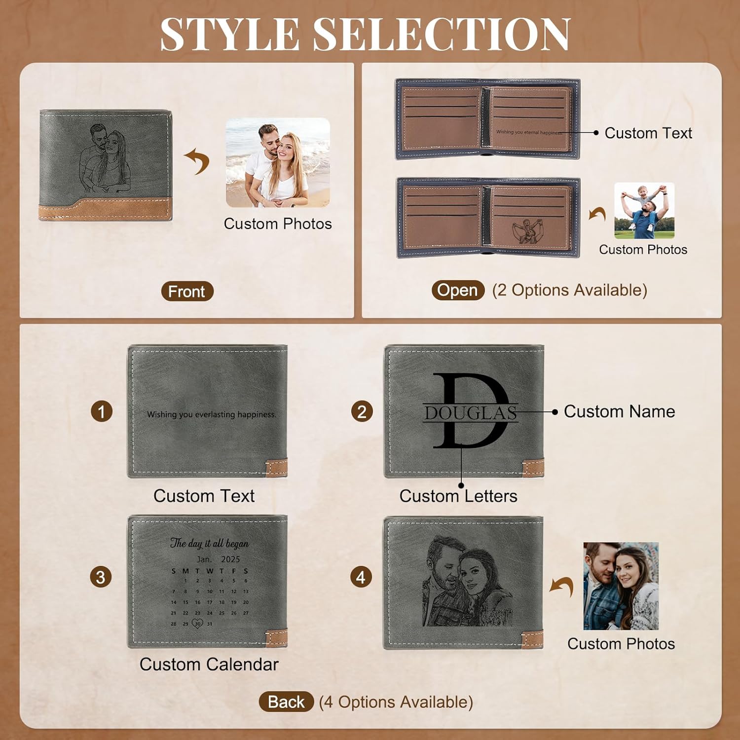 Encontrar el regalo original para un hombre puede ser un desafío, pero nada supera a un accesorio que cuenta una historia personal. Esta cartera personalizada para hombre no es solo un objeto funcional;gracias a las avanzadas técnicas de grabado láser de fotografías y texto, este accesorio es ideal para quienes valoran el valor sentimental.