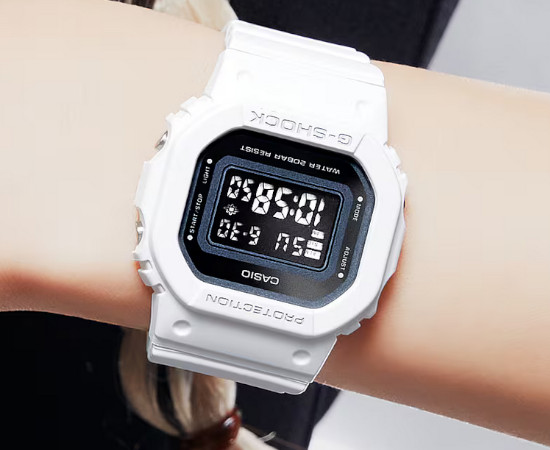 El reloj Casio GMD-S5600-7ER se ha diseñado especialmente para personas modernas, activas y aventureras. Este reloj de cuarzo digital no es solo un instrumento para marcar el tiempo, sino un símbolo robustez y versatilidad. Cada uno de sus elementos ha sido cuidadosamente pensado para satisfacer las exigencias del día a día, convirtiéndolo en un aliado indispensable tanto en entornos formales como en situaciones de alta actividad.Uno de los rasgos distintivos del Casio GMD-S5600-7ER es su estética, que destaca por su combinación en blanco tanto en la correa de resina como en la caja de acero inoxidable. La correa, resistente y duradera, se adapta de forma cómoda a la muñeca, permitiendo un uso prolongado sin molestias. Esta elección de materiales garantiza que el reloj no solo luzca impecable, sino que también resista el uso diario con eficacia, manteniendo siempre su aspecto moderno. La caja de acero inoxidable en color blanco aporta un toque contemporáneo y refinado, resaltando en cualquier ocasión. Además, el diseño de la caja ha sido cuidadosamente estudiado para ofrecer un tamaño adecuado que se ajusta a las proporciones del muñeca sin resultar intrusivo, combinando funcionalidad con un estilo inigualable.