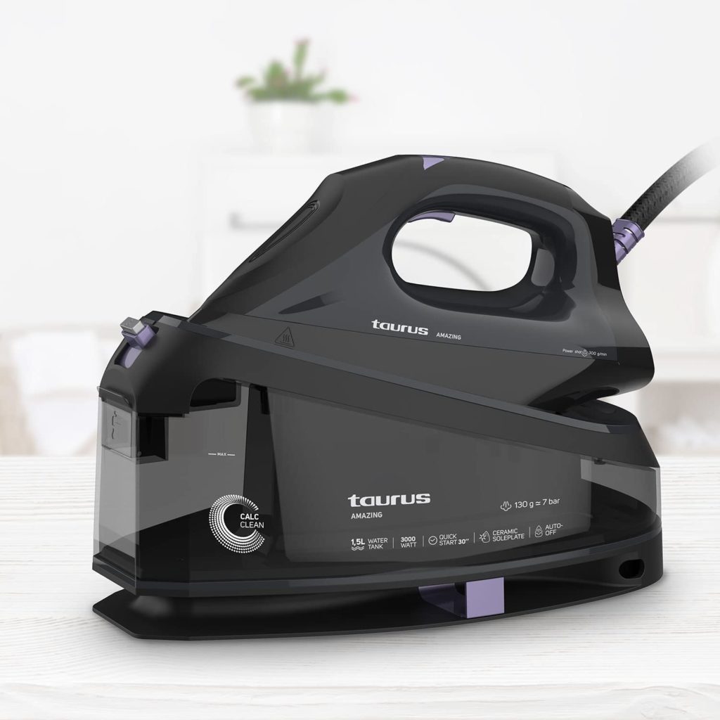 Extremadamente potente, gracias a su equivalencia de 7 bares, el centro de planchado Taurus Amazing SSD3002 ofrece resultados rápidos y eficaces. El producto se presenta en multicolor, pero es su versión en negro la que mejor precio tiene ahora mismo, con 3000 vatios de potencia y unas dimensiones de 32,5x16x19 centímetros; pesa 3 kilogramos y funciona con un voltaje de 240 voltios de corriente alterna. Está lista para usar en sólo 30 segundos, dispone de función de planchado vertical, depósito recargable de 1,5 L sin necesidad de desconectarla de su base, sistema de autolimpieza electrónica para facilitar el mantenimiento y pantalla digital en el mango para mayor comodidad. La punta de precisión te permite acceder fácilmente a botones o zonas de difícil acceso, mientras que su sistema de bloqueo patentado fija la plancha a su caldera para facilitar su transporte, un sistema antigoteo y una funda con cable para guardarlo cómodamente sin duda todas ellas características que la convierten en un modelo perfecto para conseguir siempre unos resultados impresionantes.