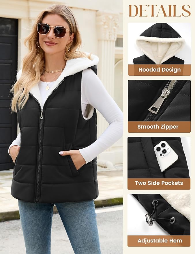 Pensado para la vida diaria y las actividades al aire libre, este chaleco incorpora un diseño funcional que incluye un tejido resistente a salpicaduras, capaz de soportar lluvia ligera o pequeños copos de nieve. La capucha ajustable y el cuello alto brindan protección adicional contra el viento, manteniéndote abrigada en cualquier entorno, ya sea durante una caminata, un paseo urbano o una escapada de fin de semana.