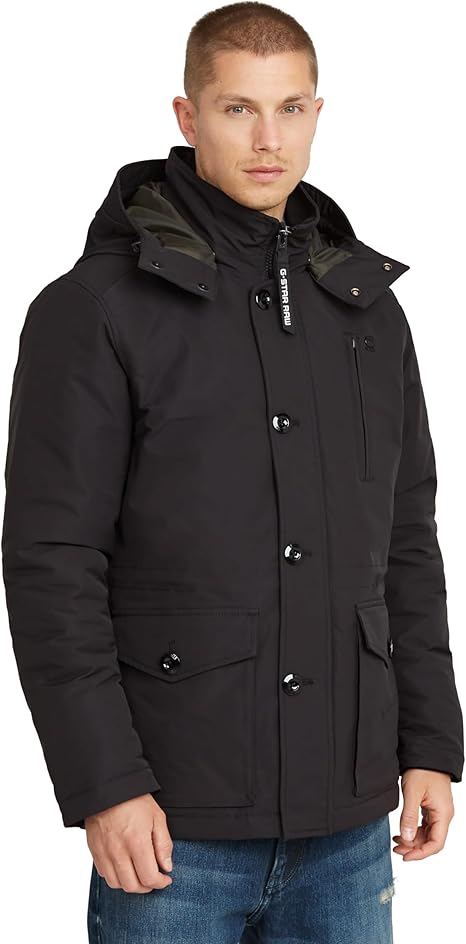 El cierre frontal combina una cremallera oculta con una botonadura superior, una solución que refuerza la protección térmica y evita filtraciones de aire. Este doble sistema no solo mejora el aislamiento, sino que también aporta un acabado más limpio y minimalista, manteniendo la estética característica de G‑Star. La sensación al cerrarla es de solidez, como si cada pieza estuviera pensada para resistir el uso intensivo sin perder forma ni funcionalidad.