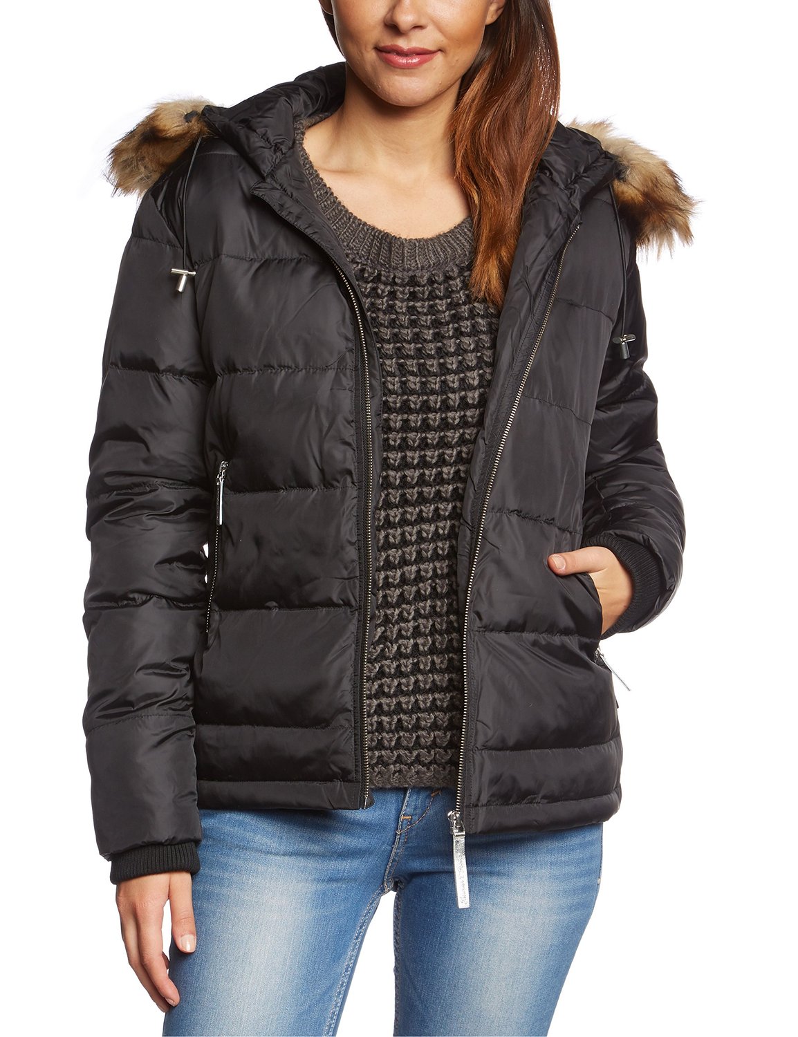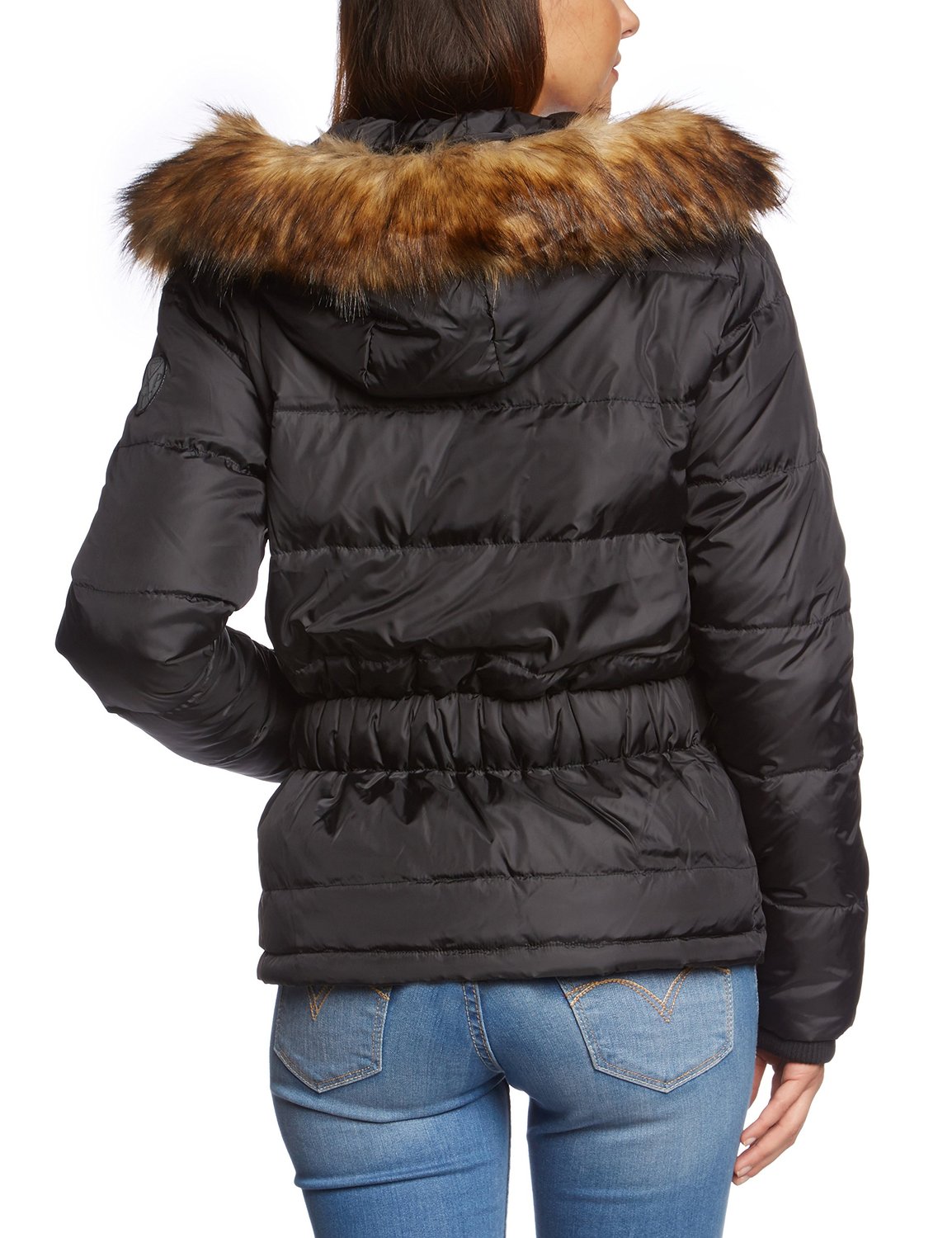 chaqueta_pepejeans_mujer_ofertaEl abrigo mantiene un corte clásico por la cadera, está rematado por dos bolsillos en la parte delantera, cremallera completa hasta la zona del cuello y una gran capucha decorada con un borde de pelo que podrá retirarse o colocarse según si va o no con la vestimenta a lucir ese día. En la zona de la espalda incorpora una zona elástica que asegura un mejor acople a la figura.