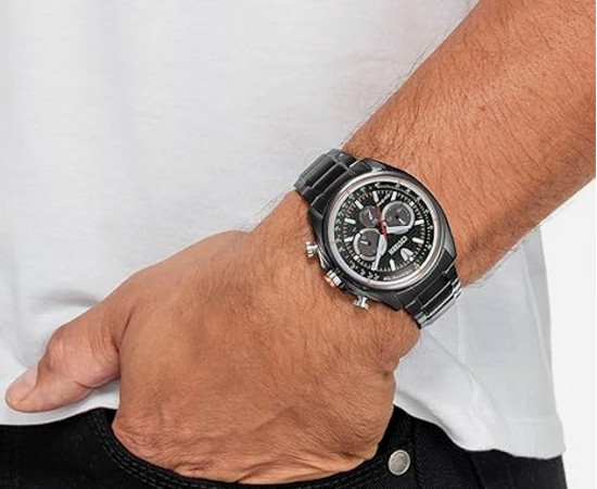 Este cronógrafo integra un conjunto de funciones pensadas para quienes valoran utilidad y precisión. Incluye calendario con indicación de fecha, cronómetro, pantalla de 24 horas, manecillas luminosas para lectura nocturna y taquímetro para medir la velocidad en distancias conocidas. Su mecanismo Eco-Drive con energía solar elimina la necesidad de cambios frecuentes de pila, ofreciendo autonomía continua con exposición a la luz. La resistencia al agua de 10 bares permite su uso en condiciones húmedas y bajo lluvia sin comprometer su funcionamiento.Con un peso de 176 g, el reloj ofrece una sensación de solidez sin resultar incómodo en el uso prolongado. La correa de acero inoxidable proporciona estabilidad y ajuste seguro, mientras que la ergonomía de la caja y la disposición de los controles facilitan su manejo cotidiano. La combinación de dimensiones y materiales está pensada para un público masculino que busca equilibrio entre deportividad y elegancia urbana.