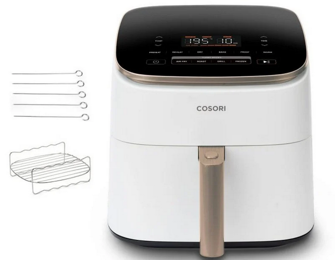 Como parte de la Chef Edition, la Cosori Turbo Blaze no solo te ofrece un rendimiento excepcional, sino que también viene acompañada de contenido exclusivo que enriquece tu experiencia culinaria. Este modelo incluye una rejilla metálica y cinco brochetas, lo que amplía tus opciones de cocina. Con estos accesorios, puedes experimentar con una variedad de recetas, desde asar carnes y vegetales hasta preparar brochetas perfectamente cocinadas. La inclusión de estos extras hace que la Cosori Turbo Blaze sea una herramienta multifacética en la cocina, ideal para quienes disfrutan explorando nuevas técnicas y sabores.