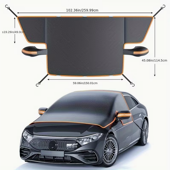 Fabricada con tela Oxford de alta resistencia, esta cubierta destaca por su durabilidad y capacidad de soportar condiciones climáticas extremas. El material grueso y resistente al helio garantiza que la superficie del parabrisas permanezca libre de acumulaciones de nieve y hielo, evitando daños y asegurando una visibilidad clara desde el primer momento. Además, su diseño robusto protege también contra polvo, hojas y suciedad, convirtiéndola en una solución práctica durante todo el año.
