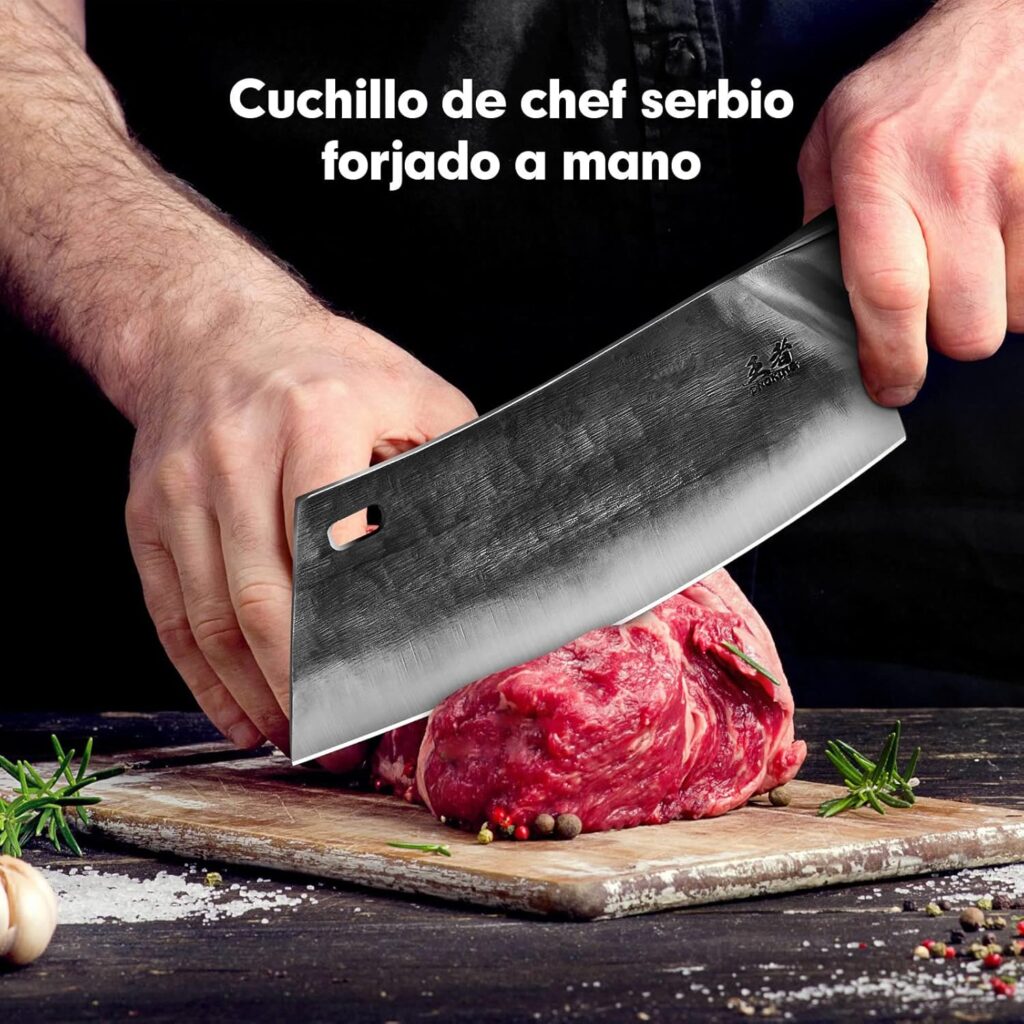 Cuchillo carnicero chino con diseño servio forjado en acero al manganeso y filo de 16° por 20,43€ antes 29,99€.
