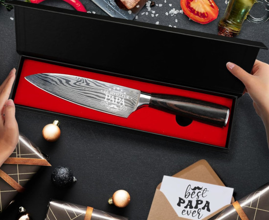 Encontrar un regalo verdaderamente especial para el Día del Padre o el cumpleaños puede volverse repetitivo. Queremos algo que emocione, que sea práctico y que, además, tenga una calidad que perdure con el tiempo. Si a tu padre le gusta la cocina, el cuchillo de cocina INOMO grabado con la frase “El Mejor Papá” reúne todas esas cualidades en un solo producto. Su diseño combina una fabricación fina, materiales de alto rendimiento y un acabado personalizado que convierte este cuchillo en un detalle inolvidable para cualquier padre que disfrute cocinando o que simplemente valore los regalos con significado. La presentación en una elegante caja de regalo, con letras claras y en negrita, refuerza la sensación de estar ante un obsequio premium pensado para sorprender desde el primer momento.