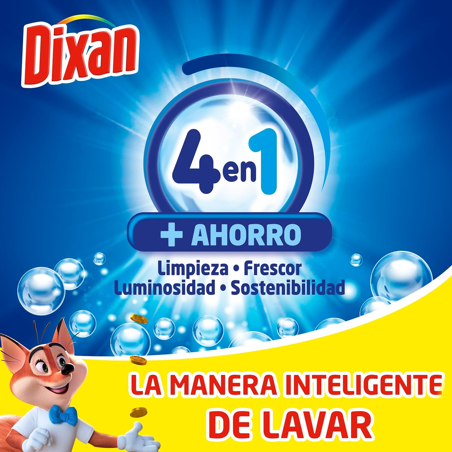 Dixan es una de las marcas que mejor reputación tienen en el mercado, tras muchos años de experiencia en el sector y un amplio catálogo de productos dedicados a la limpieza, ha conseguido generar con su Dixan Total un producto válido para la limpieza tanto de la ropa blanca como de color por igual, este detergente y su gran poder frente a la eliminación de todo tipo de manchas, es capaz de dejar nuestra ropa con una fragancia fresca y que durará muchas horas tras el lavado. Gracias a su fórmula este detergente es capaz de eliminar hasta las manchas más incrustadas en todo tipo de prendas y tejidos diferentes, además incorpora más agentes activos que consiguen que su fragancia no solo sea más duradera, sino que las prendas adquieran luminosidad respetando su color natural y recuperando en buena parte el blanco perdido en prendas claras.