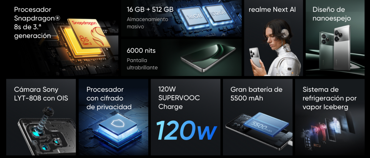 Para asegurar que este rendimiento no se degrade con el uso prolongado, Realme ha implementado un sistema de disipación térmica rápida. Esta arquitectura de refrigeración avanzada permite que el procesador trabaje a su máxima capacidad sin sufrir thermal throttling, manteniendo el dispositivo fresco incluso durante sesiones de gaming intensivo. Con 8 GB de RAM y 256 GB de almacenamiento, el GT 6 ofrece el espacio y la velocidad necesarios para el usuario moderno.