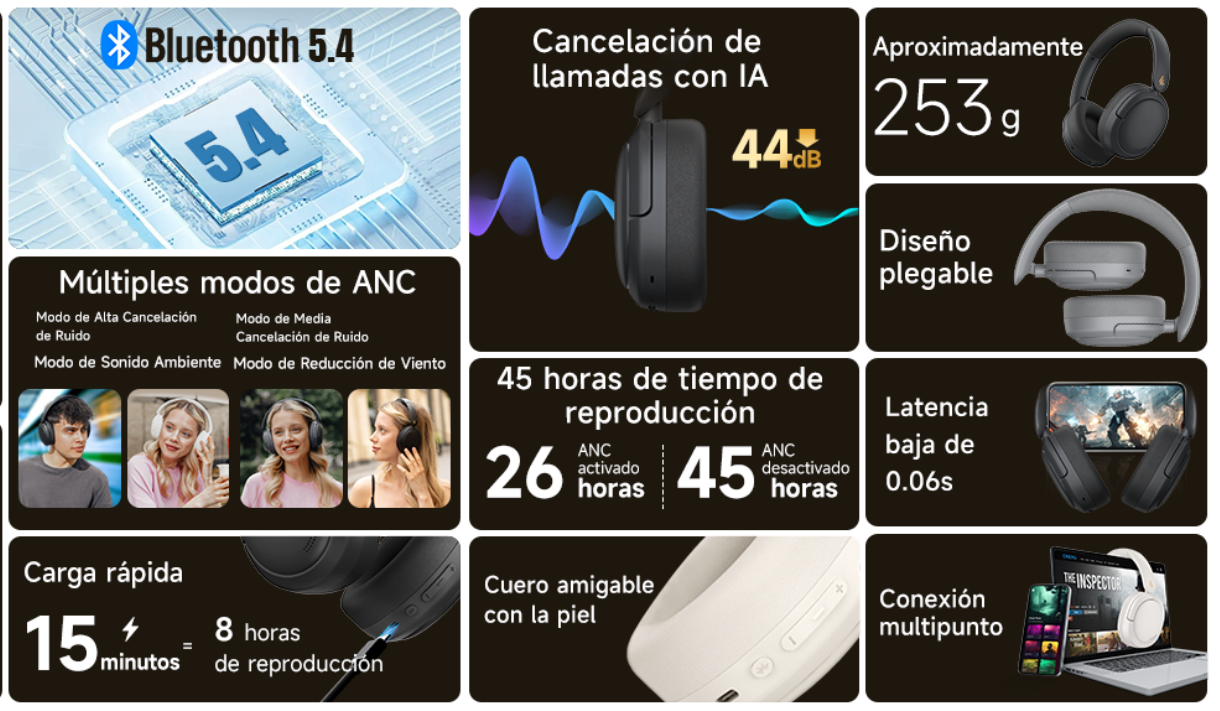 La implementación de Bluetooth 5.4 garantiza que la transmisión de datos sea más rápida y, lo más importante, más resistente a las interferencias en zonas urbanas densas. Pero la verdadera joya de la corona en productividad es la conexión simultánea a dos dispositivos. Puedes estar escuchando una lista de reproducción en tu portátil y, si recibes una llamada en tu smartphone, los auriculares cambiarán el flujo de audio automáticamente. Es la multitarea llevada a la experiencia auditiva, sin necesidad de emparejamientos constantes.
