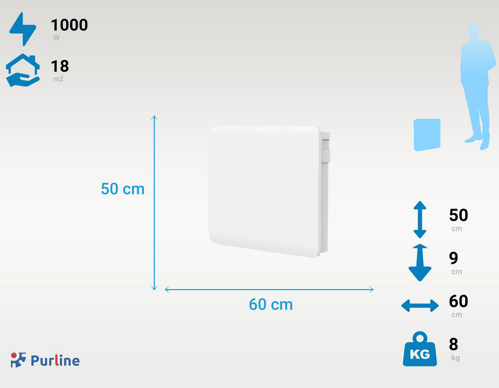 El emisor térmico cerámico Purline combina diseño discreto y funciones inteligentes para ofrecer una calefacción eficiente en estancias pequeñas. Con un acabado en aluminio blanco y dimensiones compactas de 60 x 50 x 9 cm, se integra con facilidad en dormitorios, oficinas o zonas auxiliares de hasta 10 m², proporcionando un calor homogéneo y controlado sin ocupar espacio ni alterar la estética del entorno.
