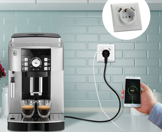 El gran atractivo de este enchufe radica en sus tres puntos de carga simultánea. Dos tomas USB de alta velocidad conviven junto a la tradicional toma de tierra, de modo que puedes conectar al mismo tiempo tu móvil, tu tablet y, además, un electrodoméstico de cocina o cualquier otro aparato eléctrico. Así, la experiencia de uso gana en comodidad y eficiencia sin saturar la instalación.