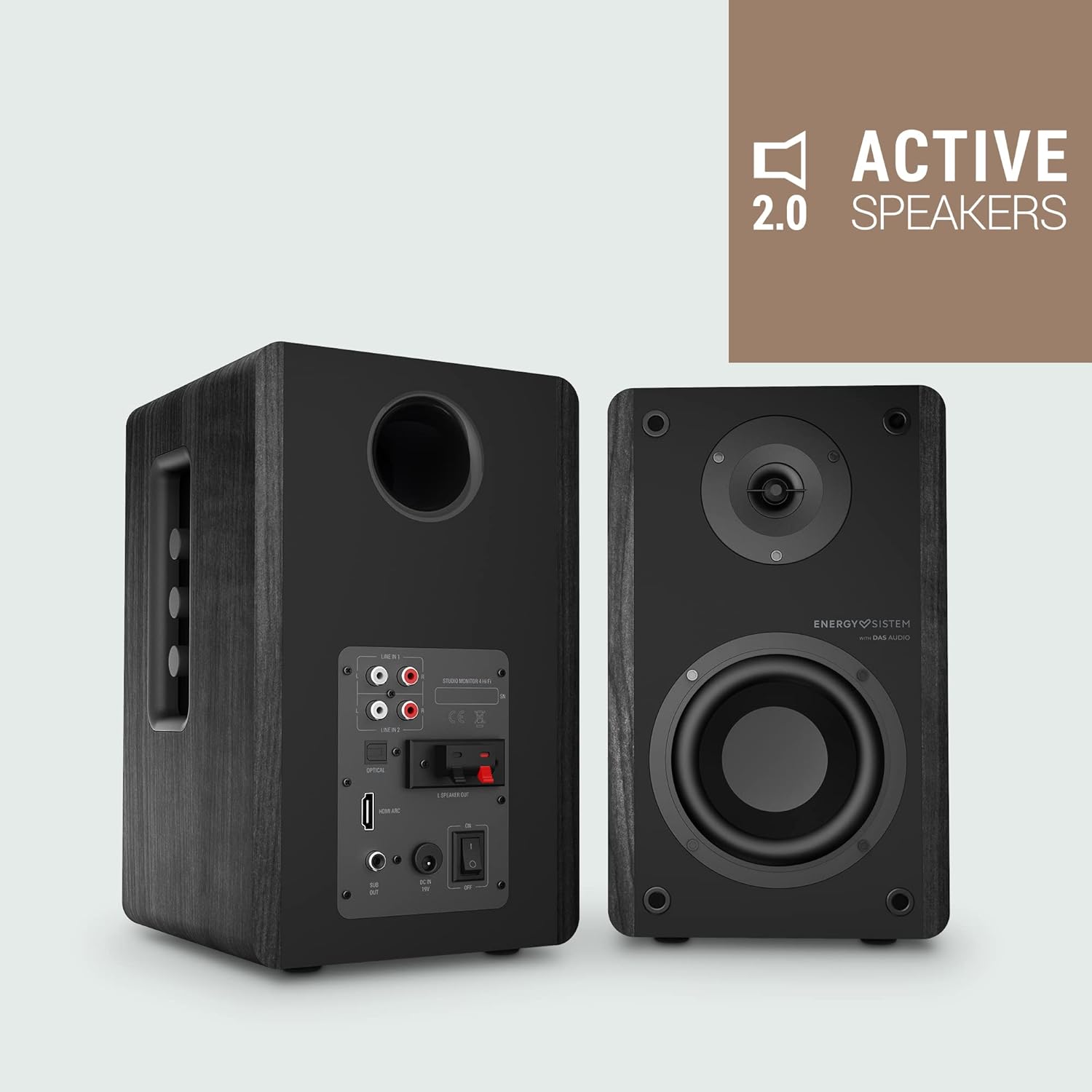 Los altavoces de estantería Energy Sistem te ofrecen conectividad moderna y potencial de ampliación sonora en un conjunto pensado tanto para el ocio audiovisual como para pequeñas sesiones de escucha exigente. Su formato 2.0 activo ofrece una reproducción clara y dinámica, perfecta para disfrutar series y películas con una escena sonora bien definida, y al mismo tiempo deja la puerta abierta a una experiencia más profunda gracias a la salida de subwoofer, que transforma el sistema en un 2.1 con graves más potentes sin renunciar a la resolución en medios y agudos.