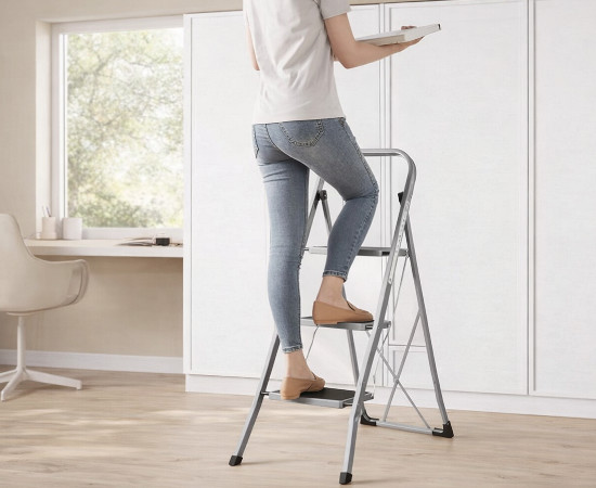 A pesar de su construcción sólida en acero, la escalera mantiene una portabilidad excepcional. Con un peso optimizado de 7,6 kg y una práctica asa integrada, trasladarla de una habitación a otra es una tarea sencilla y cómoda. No es solo un objeto funcional, sino un aliado móvil que está listo para entrar en acción en segundos y desaparecer con la misma rapidez una vez cumplida su misión. La estructura de esta escalera ha sido fabricada en acero de alta resistencia, diseñada con cuatro patas que se abren hacia fuera para maximizar la base de apoyo y garantizar una estabilidad superior. El sistema de seguridad es uno de sus puntos fuertes: incorpora un gancho de seguridad automático que se bloquea al abrir la escalera completamente, evitando cualquier cierre accidental mientras se está utilizando.