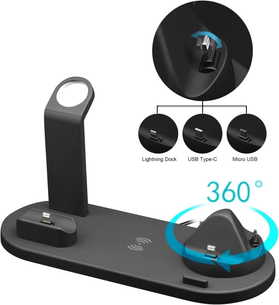 La estación de carga ofrece dos opciones de recarga: carga inalámbrica y carga rápida con cable. Gracias al adaptador de corriente de 18W incluido, los dispositivos pueden cargarse de manera rápida y segura, optimizando el tiempo de uso. La compatibilidad con puertos Tipo-C y Micro USB asegura que la estación se adapte a diferentes necesidades, convirtiéndose en una herramienta versátil para cualquier usuario. Esta capacidad de recarga rápida es especialmente útil para quienes necesitan mantener sus dispositivos listos en poco tiempo, ya sea en la oficina o durante un viaje.
