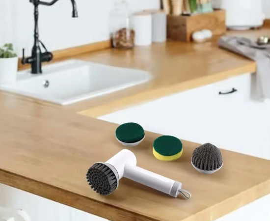 El contenido del paquete incluye todo lo necesario para empezar a limpiar desde el primer momento: una fregadora giratoria eléctrica, un cepillo plano, una almohadilla de esponja suave, una almohadilla de esponja dura y un cable de carga USB (sin adaptador de corriente). Esta configuración cubre las necesidades básicas de limpieza y permite personalizar el uso según el tipo de superficie o el nivel de suciedad.