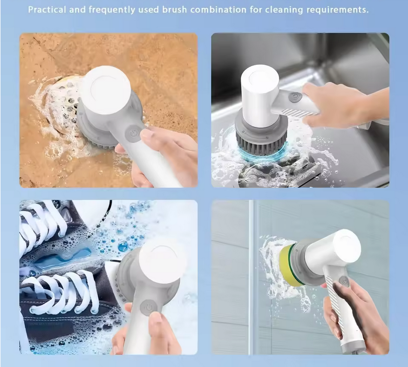 Uno de los grandes aciertos de este modelo es su sistema de cabezales de cepillo intercambiables, que amplía sus posibilidades de uso. El pack incluye tres tipos de cabezales diseñados para diferentes superficies y necesidades. El cepillo de cúpula es ideal para limpiar bañeras, lavabos y zonas curvas, mientras que el cepillo plano se adapta perfectamente a suelos, baldosas, hornos y estufas. Por su parte, el cepillo de tela está pensado para superficies planas que requieren una limpieza suave y un secado eficaz, como muebles, cristales o carrocerías de coche.