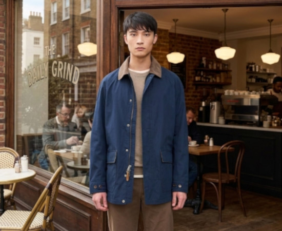 El corte tipo barn coat es conocido por su versatilidad. Esta gabardina es lo suficientemente elegante como para llevarla sobre un traje de oficina, pero mantiene ese aire rudo y funcional que combina perfectamente con jeans y botas de cuero. Es la prenda definitiva para los días de transición o el otoño profundo, donde la humedad es constante.