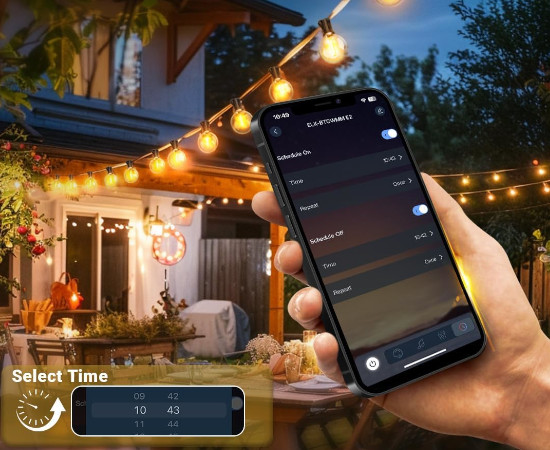 La función de temporizador personalizable lleva la domótica a tu jardín. Puedes programar encendidos y apagados precisos al minuto para cualquier día de la semana. ¿Quieres que las luces te reciban al llegar del trabajo los lunes o que se apaguen automáticamente a medianoche los domingos? La programación lo hace por ti. Además, su función de memoria asegura que, al encenderse, la guirnalda recupere exactamente el último modo configurado.