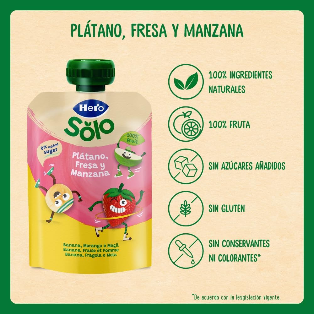 Respaldada por la experiencia y confianza de Hero Baby, cada bolsita se elabora bajo estrictos estándares de calidad y seguridad alimentaria. Se utiliza un suave tratamiento de calor que conserva la frescura, el sabor y las propiedades nutricionales de la fruta, sin necesidad de conservantes. Así, tu bebé disfruta de una merienda segura, natural y deliciosa.